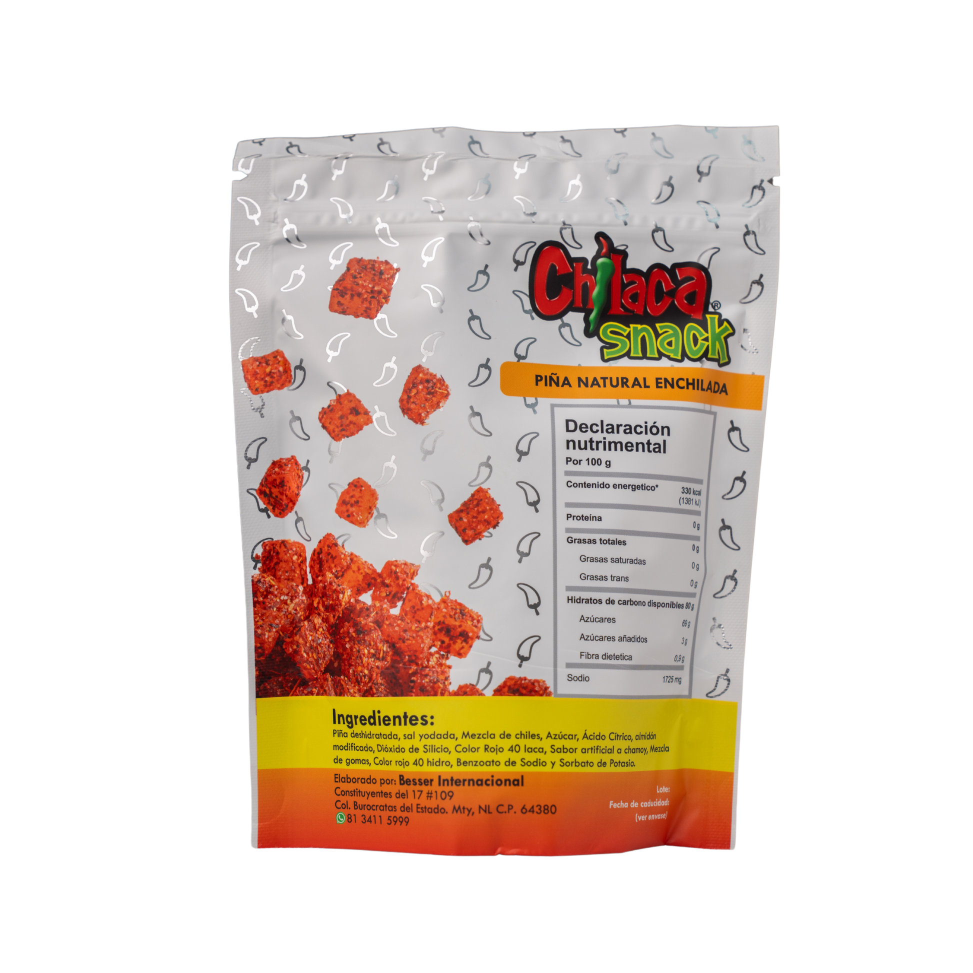 Disfruta los Cubos de Piña Natural Deshidratada y Enchilada Chilaca, una botana única que combina lo jugoso de la fruta con el toque picante del chile. Perfectos para saciar antojos dulces y enchilados en cualquier momento. Presentación de 250 g, práctica y lista para llevar.