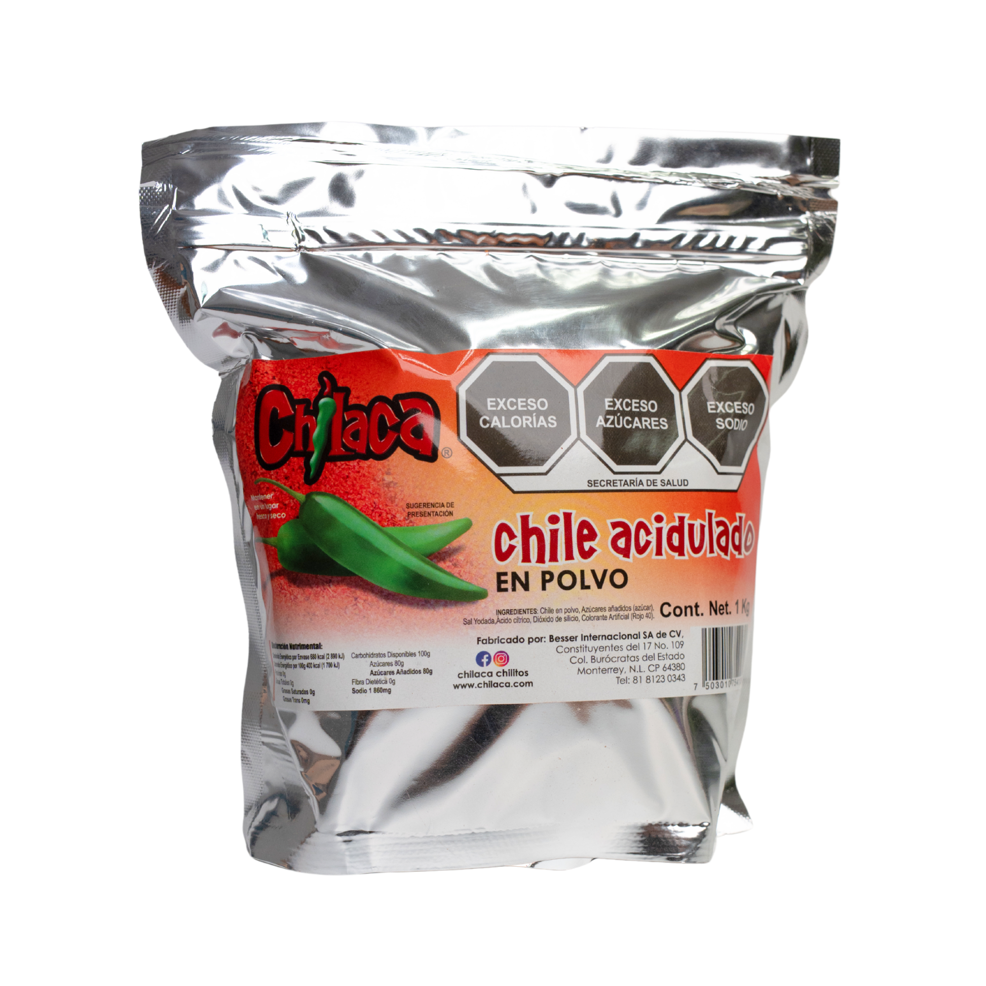 Chile Acidulado. Una combinación de chile y azúcar ideal para las manzanas forradas. Presentación de 1kg.