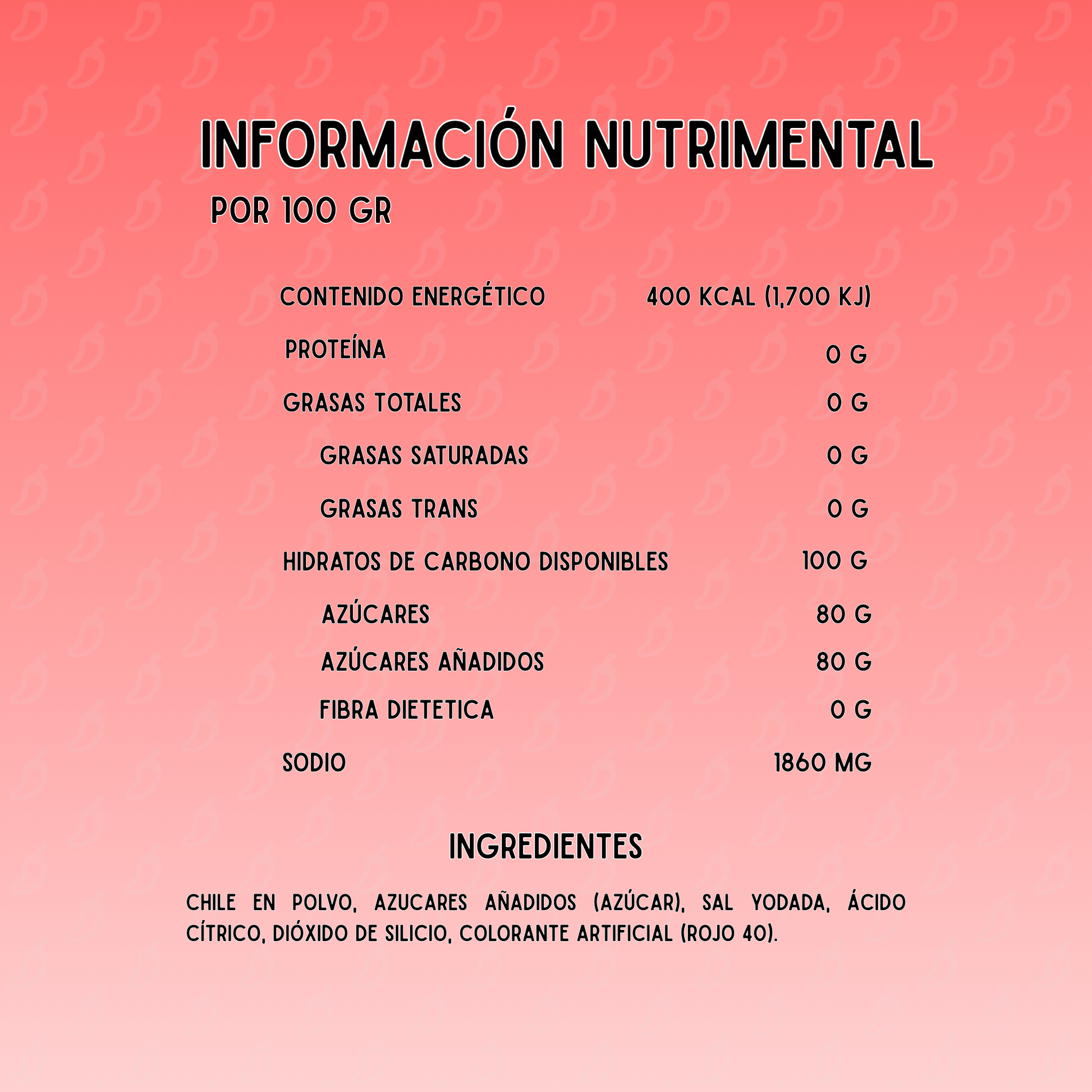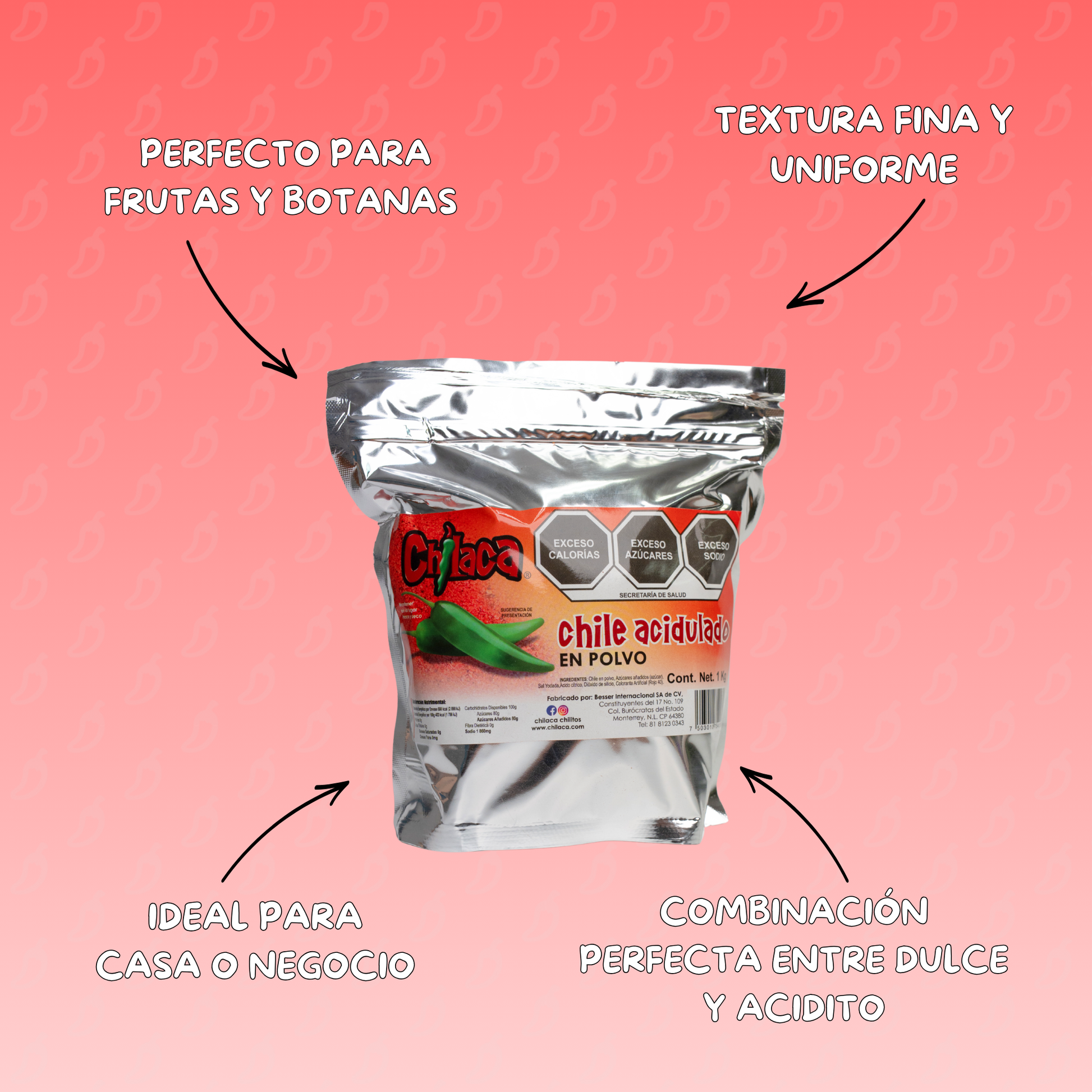 Chile Acidulado. Una combinación de chile y azúcar ideal para las manzanas forradas. Presentación de 1kg.